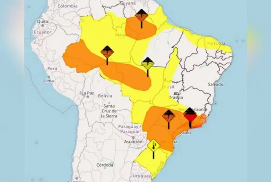 O Instituto Nacional de Meteorologia (Inmet) emitiu sete alertas meteorológicos que encobrem a maior parte do país. Um deles é sobre declínio te temperatura; veja onde