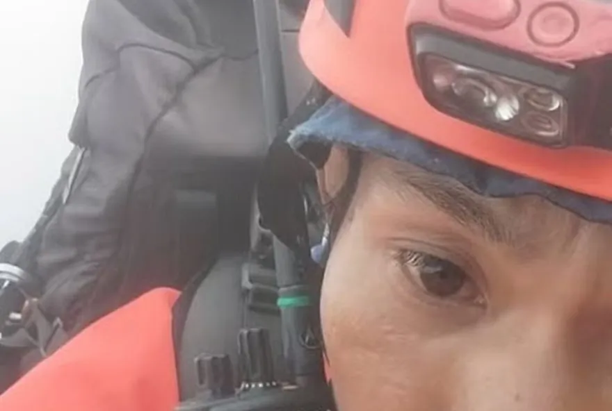 Abd Harris Agam, conhecido como Agam Rinjani, após resgatar o corpo de Juliana Marins — Foto: Reprodução