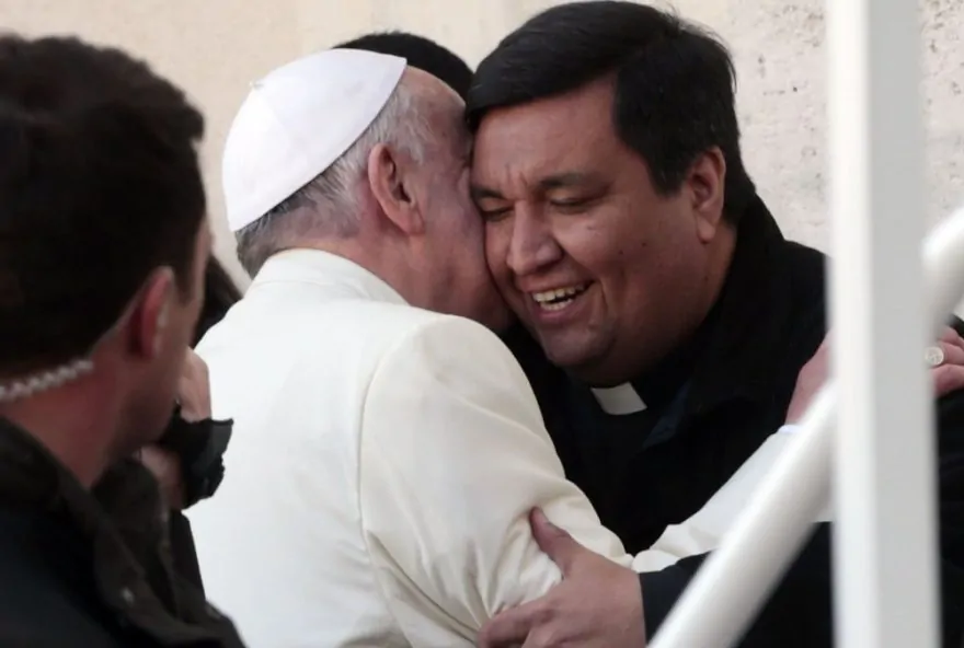 Padre Fábian Báez e papa Francisco em 2014 no Vaticano.