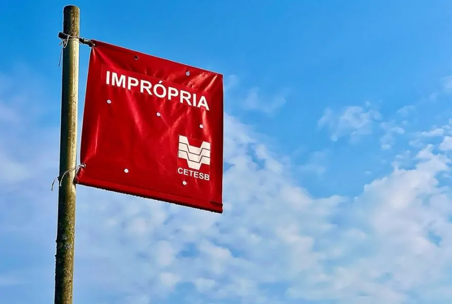 bandeira vermelha. Segundo o órgão, o recomendado é não tomar banho nas águas