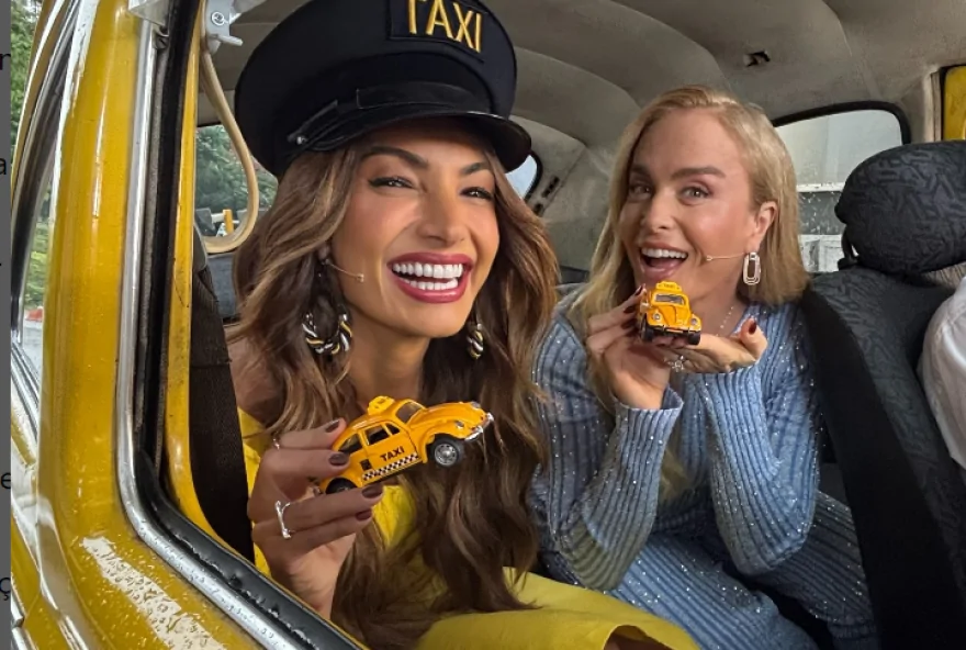 No Encontro desta sexta-feira (25), as apresentadoras Patrícia Poeta e Angélica fizeram uma entrada triunfal ao chegarem ao estúdio do programa em um táxi amarelo, um fusca, em referência à icônica música de sucesso da loira cantora. Angélica, conhecida pela sua carreira consolidada desde a infância, iniciada aos quatro anos de idade, se destacou ao som de “Vou de Táxi”, um hit dos anos 1980 que marcou época.