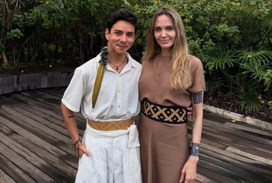 Angelina Jolie está no Brasil desde a semana passada em uma visita para compromissos relacionados à causa ativista. No sábado (5/4), a renomada atriz de Hollywood encontrou com o estilista amazonense Maurício Duarte, reforçando seu interesse em pautas sociais e sustentáveis. No encontro, que ocorreu na ONG Aya Earth, em São Paulo, Maurício teve a oportunidade de apresentar seu trabalho para a celebridade norte-americana. Os trabalhos do jovem amazonense refletem a ancestralidade e a força feminina, com silhuetas que expressam brasilidade com recortes e sobreposições em tecidos leves.