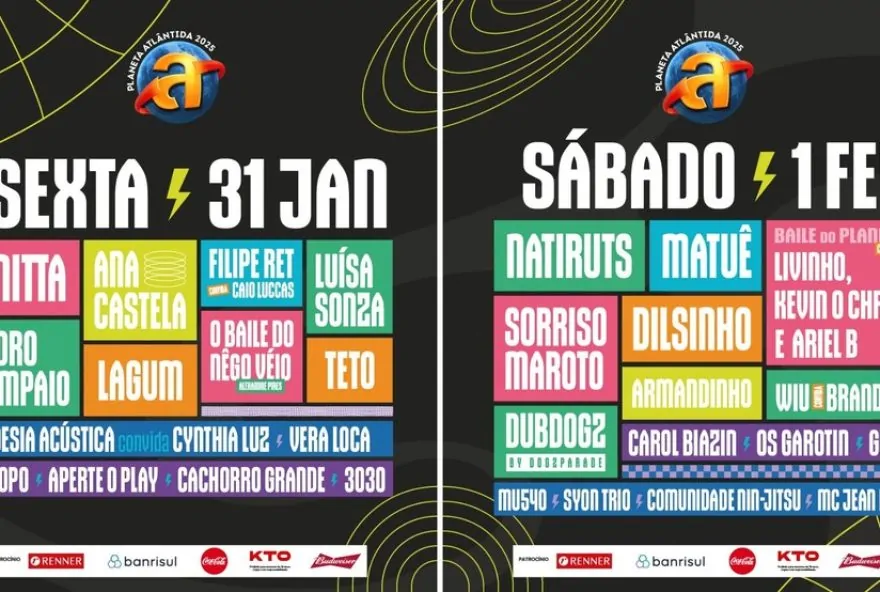 Desta vez, Anitta sobe ao palco no primeiro dia do festival, em 31 de janeiro. Além dela, nomes consolidados da música brasileira, como Ana Castela, Luísa Sonza e Pedro Sampaio, vão animar o público na sexta-feira.