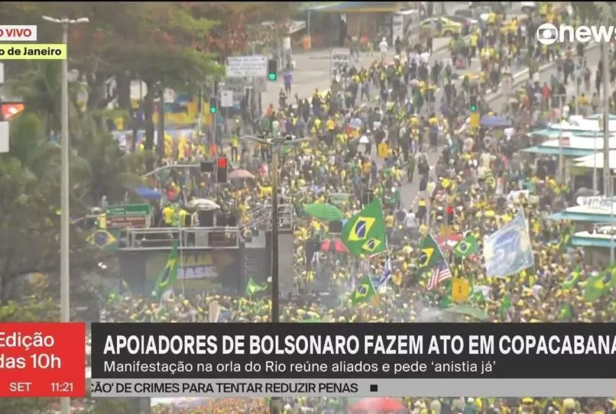 Apoiadores do presidente Bolsonaro se reuniram em atos no dia 7 de setembro, clamando por anistia para aqueles condenados por atos golpistas. Com Bolsonaro em prisão domiciliar, foi uma manifestação sem a presença direta do presidente. No entanto, a manifestação foi expressiva, demonstrando apoio ao líder. Na próxima terça-feira, o STF dará continuidade ao julgamento que pode resultar na condenação do presidente por golpe de Estado e outros quatro crimes graves.