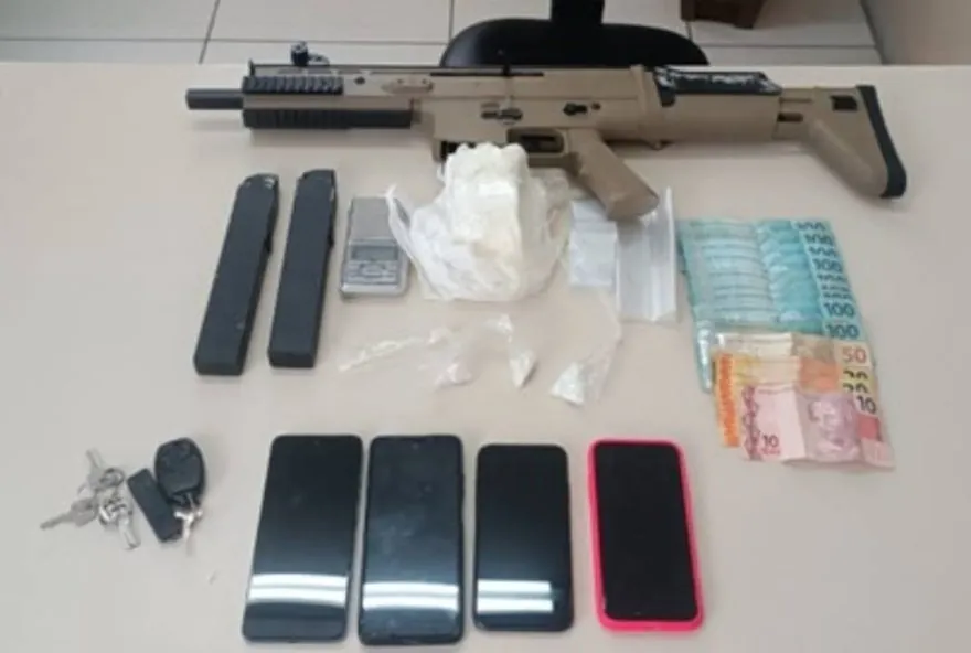 Uma apreensão significativa de carabina, drogas e dinheiro ocorreu após um ponto de tráfico ser revelado por um homem preso na Bahia. O suspeito foi flagrado com porções de entorpecentes, o que levou os policiais a um imóvel em Serrinha, situada a cerca de 70 km de Feira de Santana. No local, os agentes do 16º Batalhão (BPM) encontraram uma série de materiais ilícitos, incluindo uma carabina, drogas, embalagens para entorpecentes, um caderno de anotações, uma balança de precisão e R$ 1 mil reais em espécie.