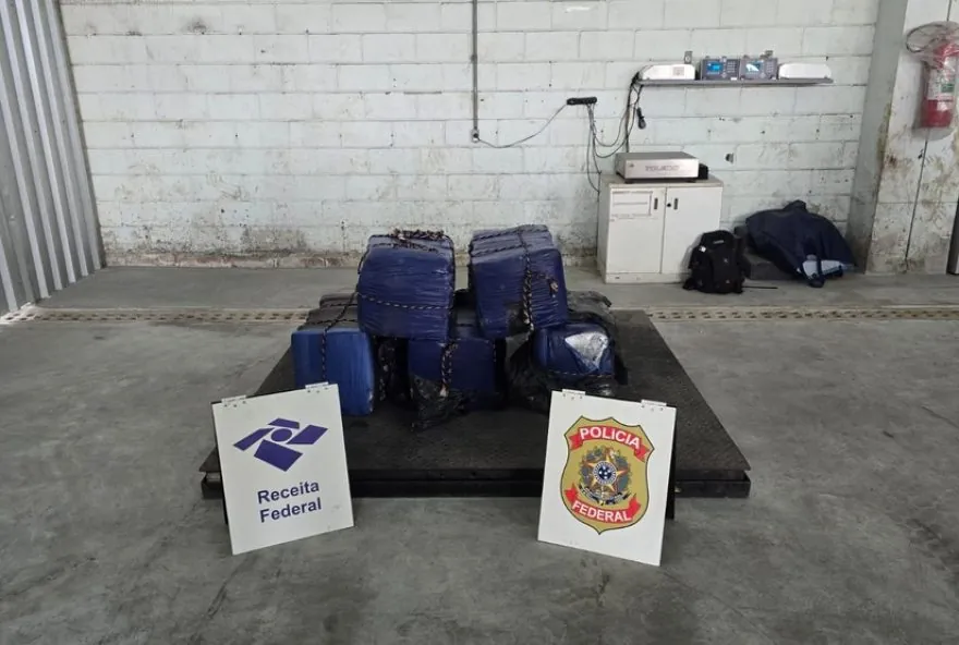 Receita e Polícia Federal apreenderam 289 kg de cocaína em um contêiner carregado com peças para motores no Porto de Santos, no litoral de São Paulo. A droga estava dividida em bolsas, que foram localizadas no interior do contêiner. O carregamento tinha como destino o Porto de Hamburgo, na Alemanha.