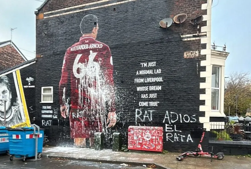 “Muro com imagem de Arnold, do Real Madrid” é vandalizado em Liverpool: “Adeus, rato”. O lateral-direito reencontra o clube que o revelou nesta terça-feira, às 17h (de Brasília), em Anfield. Alexander-Arnold teve um aperitivo da pressão que sofrerá em Anfield nesta terça-feira, às 17h (de Brasília), quando, vestindo a camisa do Real Madrid, reencontrará o DE, único clube que havia defendido na carreira.
