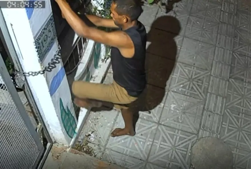 flagraram o momento em que um homem pula o muro, entra no local e furta
