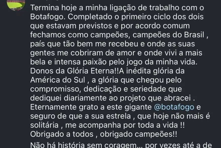 Artur Jorge, ex-técnico do Botafogo, se despede do clube carioca após ser anunciado como novo treinador do Al-Rayyan, do Catar. Sua passagem pelo time brasileiro foi marcada por conquistas importantes, como o título do Campeonato Brasileiro e da Libertadores. Em uma carta de despedida publicada em suas redes sociais, Artur Jorge expressou sua gratidão pela oportunidade de trabalhar no Botafogo e ressaltou a importância do acordo mútuo que resultou em sua saída.
