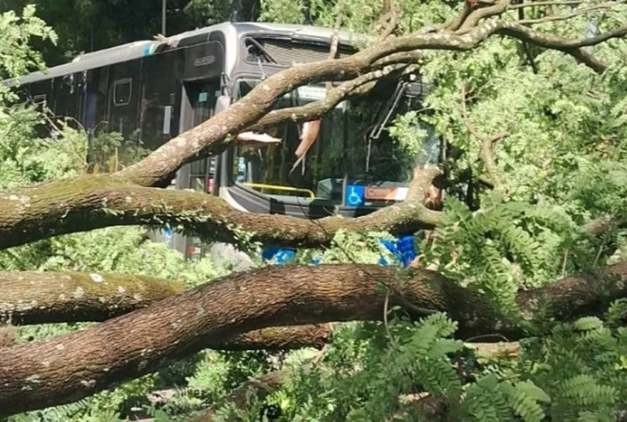 Uma árvore de grande porte caiu em cima de um ônibus do transporte público e atingiu outros cinco veículos na Rua Professor Luís Sanches, bairro Freguesia do Ó, Zona Norte de São Paulo, nesta segunda-feira (16). O incidente ocorreu enquanto o ônibus estava estacionado no ponto inicial da linha 971M/10 Vl. Penteado – Metrô Santana. Felizmente, não houve feridos, segundo informações do Corpo de Bombeiros.