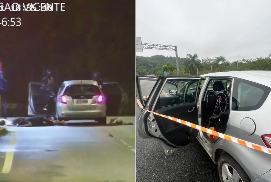 Criminosos fizeram vítimas de reféns na Rodovia Padre Manoel da Nóbrega, conforme imagens captadas por câmeras de monitoramento na madrugada de segunda-feira (9). As cinco vítimas foram abordadas enquanto retornavam para a capital paulista, após passar o fim de semana na Baixada Santista, desfrutando do litoral do estado.