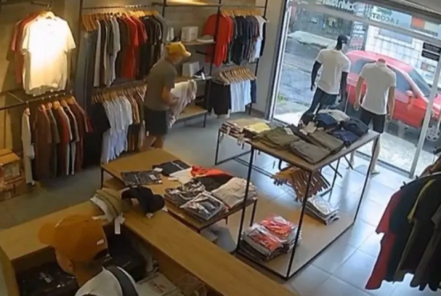 Uma loja de roupas foi alvo de criminosos no bairro da Maracangalha, em Belém, nesta quinta-feira (15). A ação foi registrada por câmeras de segurança do estabelecimento – Veja no vídeo acima. As imagens mostram dois dos assaltantes recolhendo roupas que estavam expostas nas araras. Em outro detalhe, é possível ver uma funcionária acuada dentro de um dos provadores. Os criminosos separam as peças e caixas, enquanto um deles chega a sair da loja para buscar sacos dentro de um carro estacionado em frente ao local.