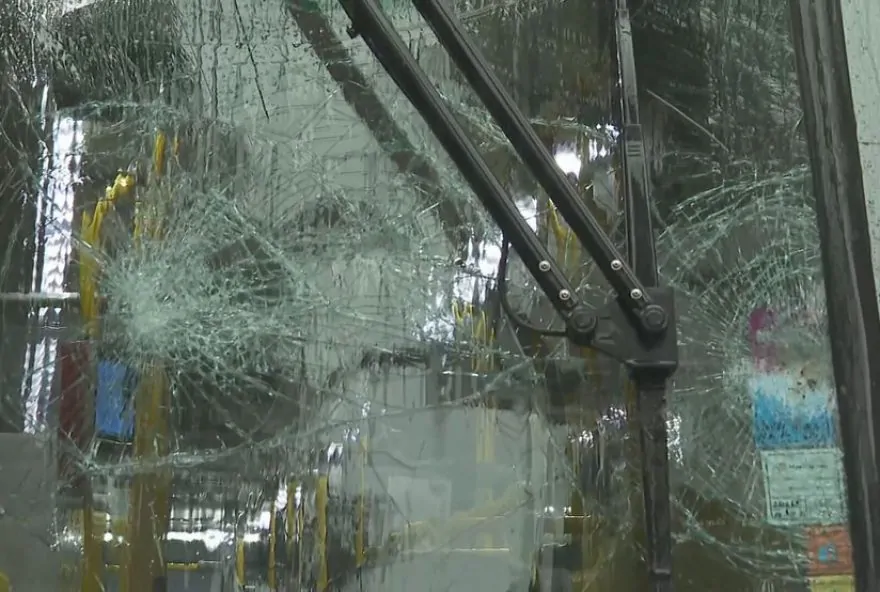 Ônibus Move é depredado durante cortejo de enterro de motociclista