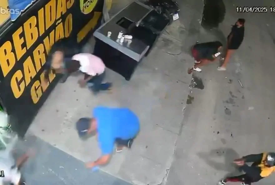 Na sequência de eventos capturada pelas câmeras de segurança, é possível ver claramente seis pessoas reunidas em frente ao estabelecimento, quando o atirador chega em sua moto. Sem hesitação, ele desce do veículo com o capacete ainda na cabeça e começa a disparar contra o homem de camisa azul, boné e bermuda preta. As outras pessoas presentes conseguem fugir rapidamente, enquanto a vítima cai ferida no chão.