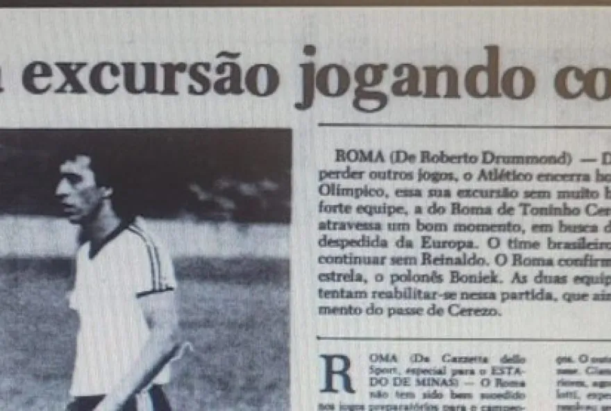 O último desses duelos completou 40 anos exatamente nesta segunda-feira, em 18 de agosto de 1985, quando o Atlético encerrava uma excursão pela Europa enfrentando a Roma no estádio Olímpico, na capital italiana. O Galo vinha de vitórias sobre o Athletic Bilbao e o Cádiz, além de derrotas para o Ajax e o Barcelona, antes de enfrentar a Roma, onde Ancelotti estava em campo.