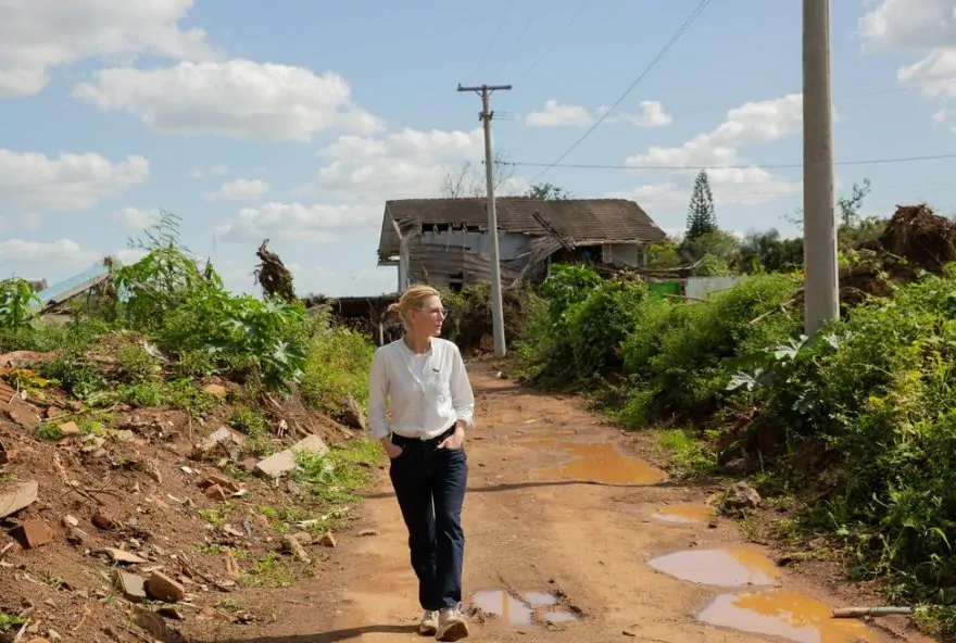 Representante da Agência da ONU para Refugiados (Acnur), Cate Blanchett percorreu diversas localidades afetadas pela enchente que assolou o estado em maio de 2024. Além de Porto Alegre, a atriz também visitou Taquari e Cruzeiro do Sul, cidades que sofreram com as consequências do desastre ambiental. Como Embaixadora da Boa Vontade da entidade, a atriz teve a oportunidade de se reunir com pessoas refugiadas e brasileiros impactados pela enchente, além de conhecer iniciativas lideradas por refugiados em auxílio à população local.