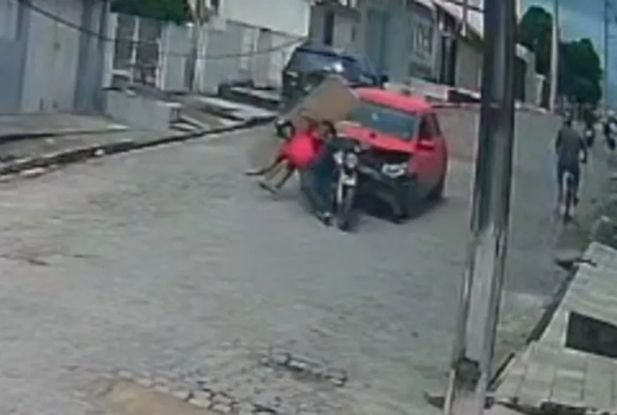 Carro atropela motociclista e garupa na cidade de Limoeiro, no Agreste