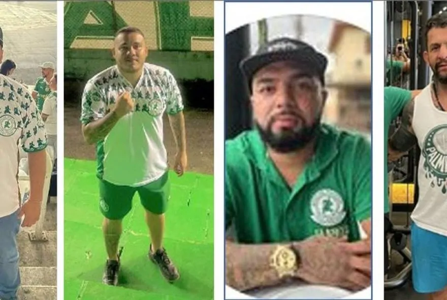 Quatro dos seis palmeirenses procurados são: Jorge Santos (presidente da Mancha Alviverde); Felipe dos Santos, o ‘Fezinho’ (vice-presidente); Leandro Santos, o ‘Leandrinho’. e Neilo Silva, o ‘Largartixa’ — Foto: Reprodução/Redes sociais