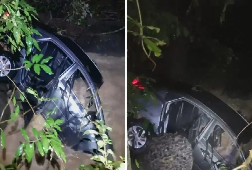 Motorista e avó falecem após carro ser arrastado para dentro de rio na noite de Natal, conforme informações dos bombeiros. A correnteza levou o veículo que passou sobre a ponte e acabou caindo no córrego.
