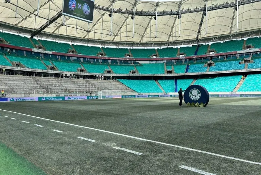 Bahia x Palmeiras: gramado da Fonte Nova apresenta coloração diferente antes de jogo