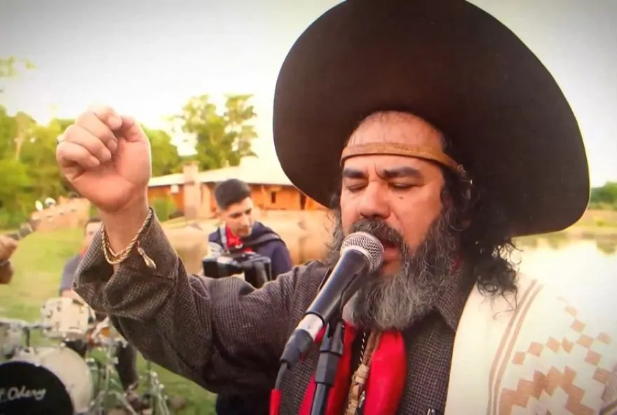 E chegou chegando na casa do sertanejo: pilchado, faca na cintura e de cuia e térmica nas mãos. Ele falou do início da carreira, sobre o apoio que recebeu do Xirú Missioneiro na gravação de suas primeiras músicas.