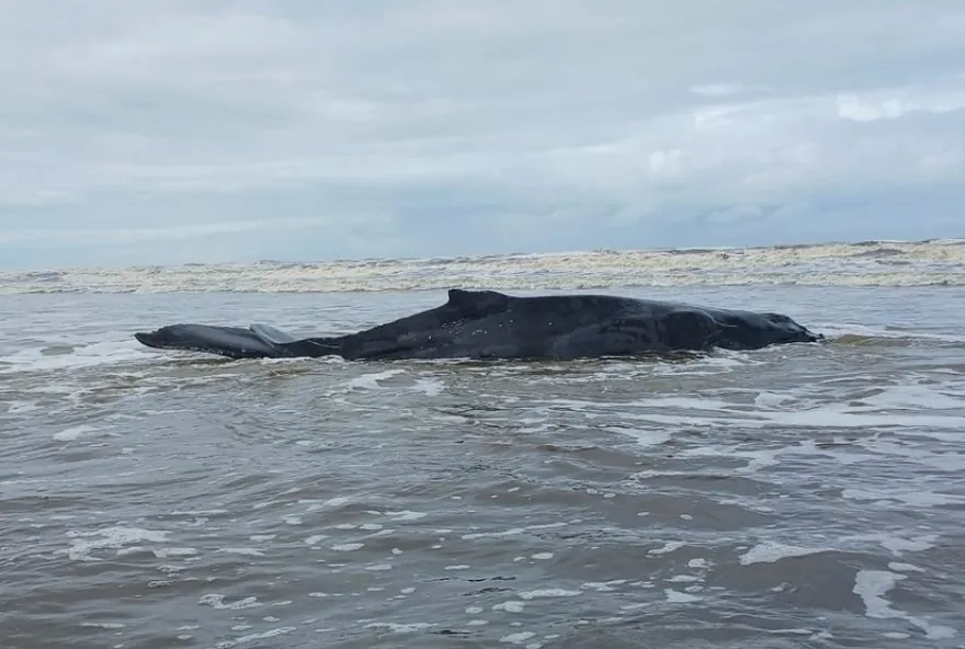 Uma baleia-jubarte (Megaptera novaeangliae) encalhou viva na madrugada desta