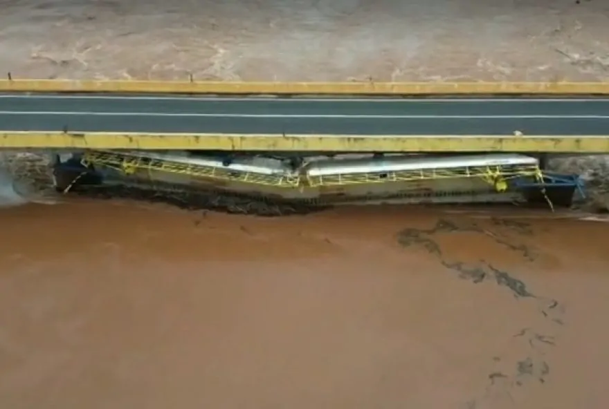 A balsa que bateu contra a ponte da DE permanece presa à estrutura, neste sábado (14). A informação foi atualizada pela Polícia Rodoviária Estadual (PRE). O acidente aconteceu na terça-feira (10), entre Floresta e Engenheiro Beltrão, no noroeste do Paraná, quando o nível do Rio Ivaí aumentou devido às fortes chuvas.