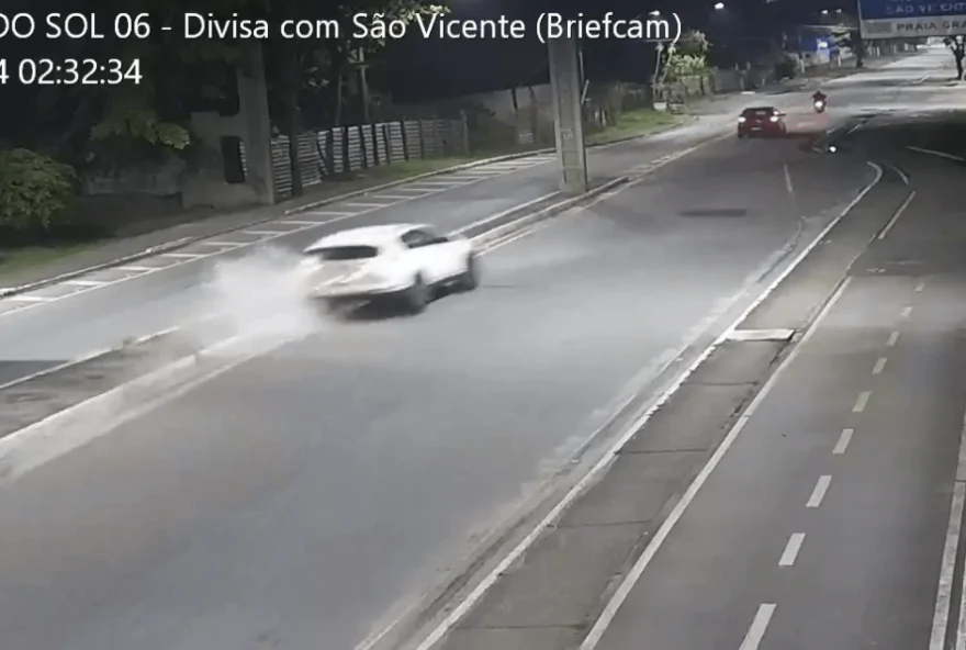 Um novo registro mostra o bancário Thiago Arruda Campos Rosa, de 32 anos, dirigindo acima da velocidade e subindo em um canteiro segundos antes de atropelar e matar o cantor de pagode Adalto Mello, de 39, em São Vicente (SP).