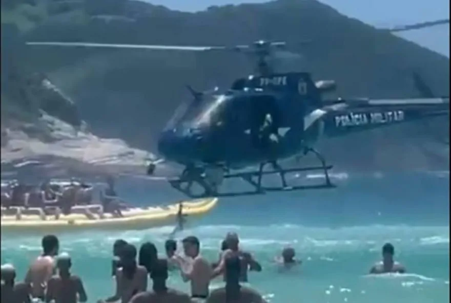 helicóptero e foi surpreendido por banhistas que se esforçaram para devolver a