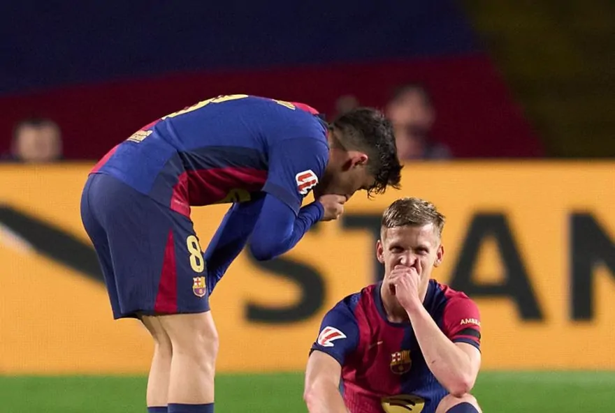 Olmo marcou o segundo gol do Barcelona, aos 20 do primeiro tempo, em pênalti que ele próprio sofreu. Cinco minutos depois, sentou no gramado do Olímpico de Montjuic, levou a mão ao adutor da coxa direita e pediu substituição – Fermín López entrou em seu lugar.