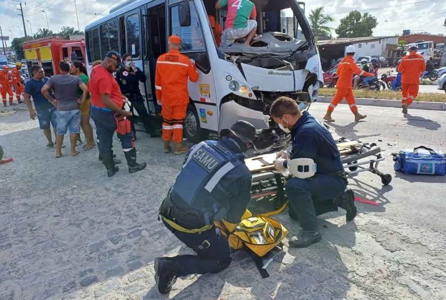 Batida entre caminhão e micro-ônibus deixou feridos em Paulista, no Grande Recife.