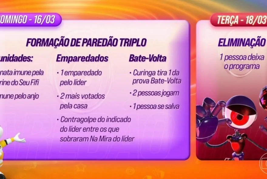 A noite de domingo (16) será marcada pela formação de mais um Paredão Triplo, com o indicado do Líder, os dois mais votados pela casa e um contragolpe do indicado pelo Líder. Desta vez, o contragolpe só pode puxar alguém que estava Na Mira do Líder.