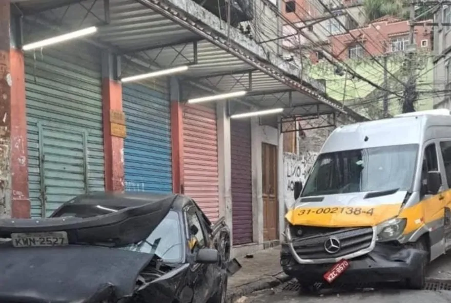 Um blindado da Polícia Civil bateu em dois veículos, entre eles uma van de transporte escolar, durante uma operação na manhã desta quinta-feira (10) na comunidade do Fallet, na região central do Rio.