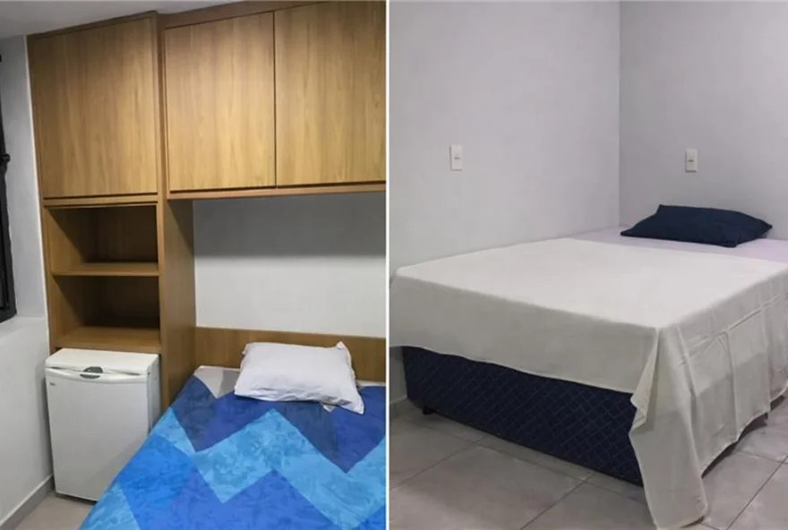 Depois: A cela tem quarto, sala, banheiro, cozinha, lavanderia e área