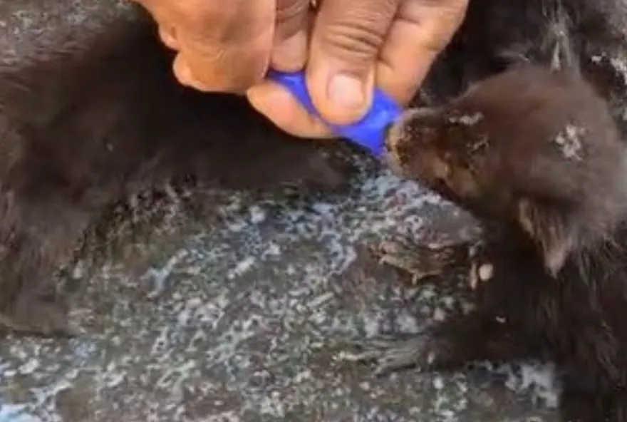 Raposas filhotes são resgatadas e cuidadas por bombeiros após mãe morrer em incêndio; vídeo