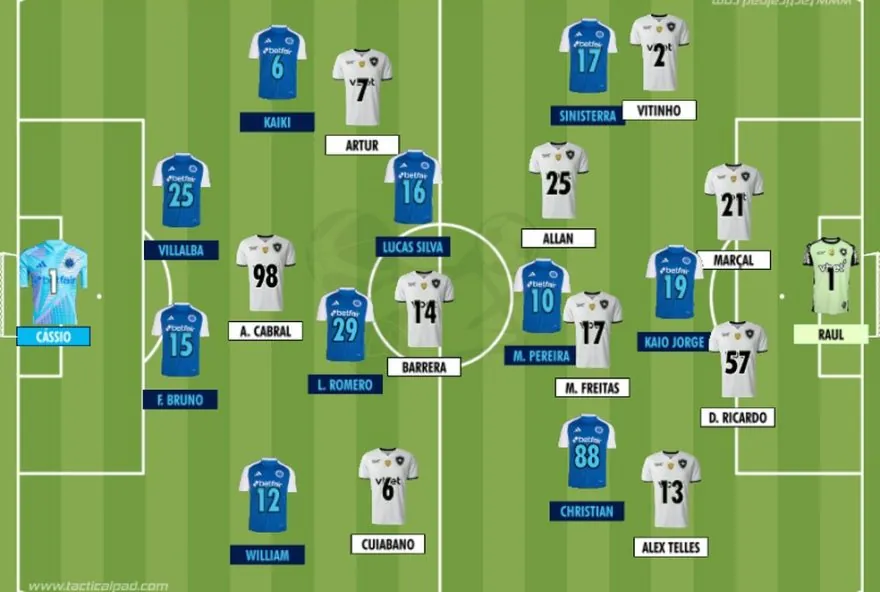Em mais um confronto emocionante da reta final do Brasileirão, Cruzeiro e Botafogo proporcionaram um jogo cheio de reviravoltas. A Raposa dominou boa parte da partida e chegou a abrir 2×0 no placar, mas o Glorioso se transformou com a entrada de Montoro, buscando o empate com muita agressividade. Marçal teve uma atuação destacada, marcando um gol e participando da jogada que resultou no pênalti convertido por Alex Telles.