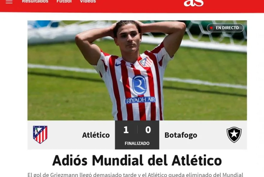 O diário espanhol “AS” estampou em suas manchetes “A despedida do Atlético da Copa do Mundo” e destacou que o gol de Griezmann chegou tarde, provocando a eliminação do Atlético. Além disso, o jornal também ressaltou que, com a derrota, o Botafogo perdeu a liderança do grupo. A repercussão do jogo entre Botafogo e Atlético de Madrid gerou grande interesse na imprensa internacional, demonstrando a importância do evento esportivo.