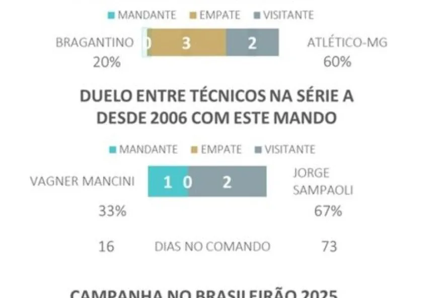 Mesmo mandante, desde 2006, o Bragantino ainda não conseguiu derrotar o Atlético-MG pelos pontos corridos. Foram cinco jogos, com três empates e duas vitórias mineiras nos últimos dois confrontos.