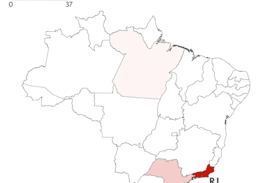 Dois estados registraram alta nos números: RJ, que subiu de 18 para 37 (alta de 106%), e PB, com aumento de 1 para 2 casos (100%).