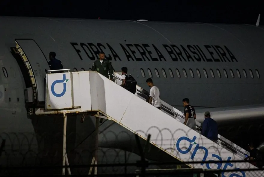 Brasileiros deportados dos Estados Unidos, que chegaram na tarde desta sexta-feira (7) ao Aeroporto de Fortaleza, foram transportados algemados e não tiveram acesso a alimentação, conforme informou Mitchelle Benevides Meira, secretária da Diversidade do Ceará. Quando o avião pousou, as algemas foram retiradas e os brasileiros tiveram acesso à alimentação oferecida pelo governo estadual. “Tiveram pessoas que ficaram 12 horas sem comer, mas foram todos acolhidos, alimentados e passaram por tratamento hospitalar”, declarou em coletiva de imprensa após o avião pousar no Brasil. Segundo a secretária, o governo estadual também auxiliou no contato com as famílias.