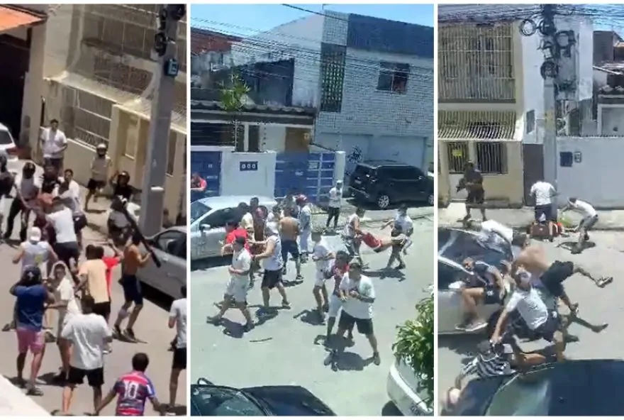 Torcedores do Ceará e do Fortaleza envolveram-se em uma briga generalizada às vésperas do Clássico-Rei, neste final de semana. Os grupos flagrados trocaram socos e chutes, além de lançarem pedras e paus uns contra os outros. A confusão ocorreu no bairro Álvaro Weyne, em Fortaleza, próximo à Arena Castelão, local da final do Campeonato Cearense 2025 entre o Ceará Sporting Club e o Fortaleza Esporte Clube. Dez suspeitos foram detidos por envolvimento na briga.