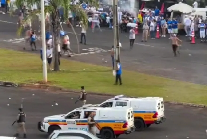 Brigas antes de Cruzeiro x Vasco em Uberlândia: PM controla confusão no Parque do Sabiá