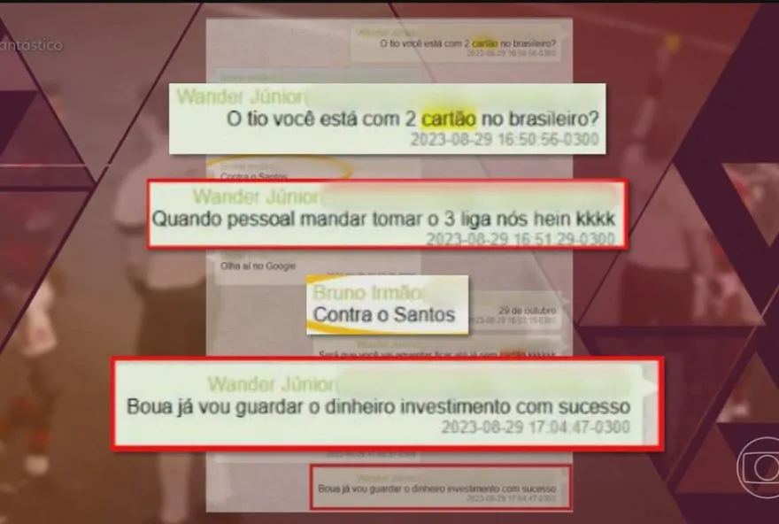 O Fantástico revelou detalhes inéditos de um esquema de apostas e jogadas manipuladas, investigado pela Polícia Federal. Bruno Henrique, estrela do Flamengo, é apontado como peça central. Depois de analisar os celulares e computadores apreendidos, a polícia concluiu um relatório que contém diversas trocas de mensagens mantidas entre Bruno Henrique e o irmão dele, Wander Nunes Pinto Junior.