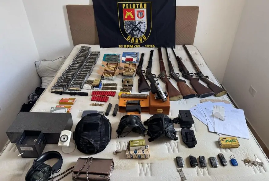 A revista no local revelou uma grande variedade de armas escondidas, incluindo uma pistola e seis armas longas, como carabinas, mosquetões e espingardas. Além disso, foram encontrados seis carregadores e mais de 1,8 mil munições de diversos calibres. Diversos acessórios para armas também foram apreendidos, como uma empunhadora de fuzil, uma luneta, um abafador de tiro eletrônico e um capacete balístico.