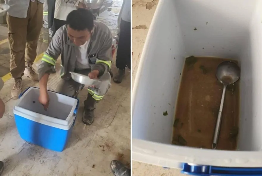Comida em cooler, operários descalços e pias entupidas: imagens mostram condições de trabalho em obra da BYD na Bahia
