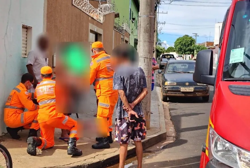 Os bombeiros estancaram as hemorragias e levaram o idoso até o Hospital de Clínicas da Universidade Federal do Triângulo Mineiro (HC-UFTM).