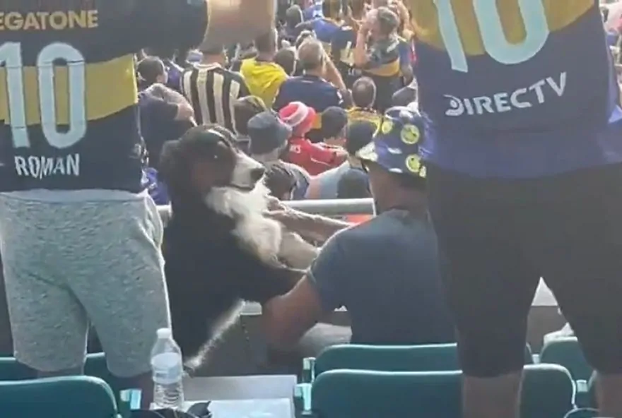 Só faltou invadir o campo! Cachorro é flagrado na torcida do Boca Juniors contra