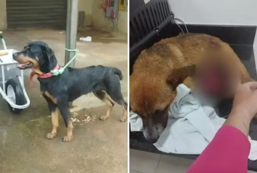 Na tentativa de salvar a cadela, o homem teve que chutar o animal agressor e segurá-lo pela coleira. Infelizmente, a cadela sofreu graves ferimentos, com as vísceras expostas, enquanto outro cachorro também sofreu lesões generalizadas após os ataques da rottweiler.