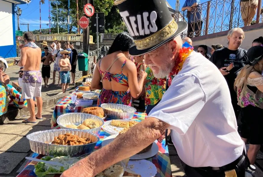 Os foliões que chegam cedo para curtir o carnaval em São Luiz do Paraitinga são recebidos com uma mesa farta de café da manhã. O evento é gratuito e oferece café, queijo, bolos e pães para o público na Praça do Chafariz, próximo à Igreja do Rosário. Essa tradição é mantida por amigos de Benito Campos, fundador do bloco, e por voluntários que se dedicam a manter viva a cultura local.