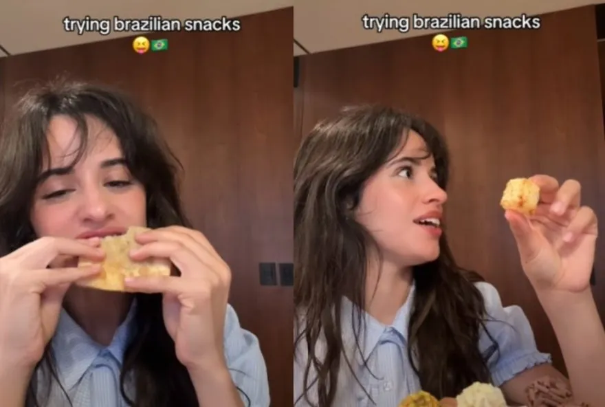 Camila Cabello chamou atenção nas redes sociais ao postar um vídeo experimentando doces brasileiros, dias antes do show. No vídeo, a cantora aparece provando quitutes tradicionais como brigadeiro, beijinho e paçoca. Ela até falou que o pão de queijo foi um dos seus preferidos. “Eu tive que esconder porque não conseguia parar de comer”, contou. “Me sinto meia brasileira”, brincou a cantora.